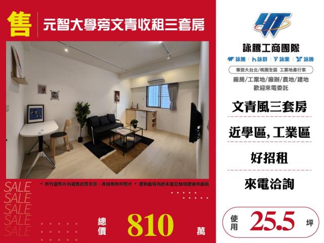 案名:元智大學旁文青收租三套房